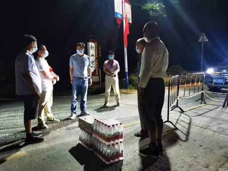 江镇镇纪委夜间暗访路口疫情防控情况,向卡口值班值守同志了解群众是否出行、开展谈心交流,并送去矿泉水等慰问品。