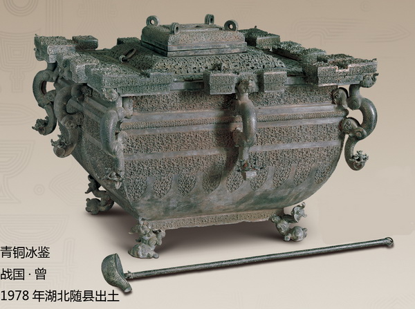 除了悠游山林、亭台戏水,古人还发明了自己的“空调”、“冰箱”。这其中,冬冰夏用可谓是历史最为悠久的降温方式。《诗经》有云:“二之日凿冰冲冲,三之日纳于凌阴。”隆冬时节凿取冰块,放入冰窖之中贮藏,等到夏天来临便将冰块取出,或将其做冷饮冰酪,或直接放在房间中用以降温。《开元天宝遗事》记载,杨贵妃的堂兄杨国忠为结交权贵,常常在家中宴请宾客。每到伏天,杨国忠便令匠人雕刻冰雕,摆放在自己的宴席之中。冰块之多,使得宾客“各有寒色”,有人甚至还想穿上棉袄,由此可见其用冰之奢。除了做成冰雕,古人一般将冰放入冰鉴中。冰鉴可以被看作古人的冰箱空调一体机,一般分为两层,外层放冰,里层可放果蔬和酒以冰镇。同时,冰鉴上方的盖子也会凿孔,以方便冷气冒出从而使室内降温。