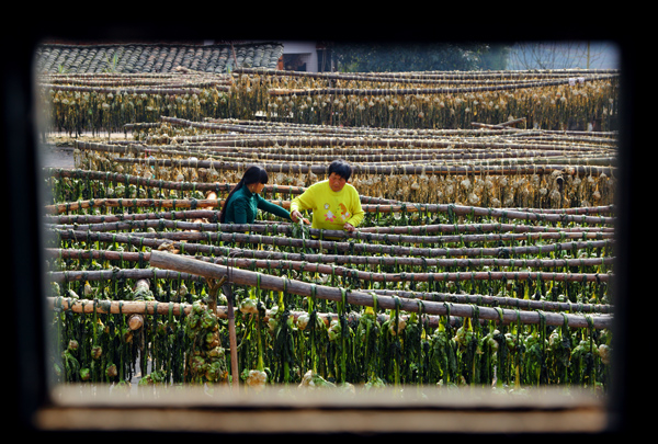 初秋,阳光把青菜头晒成了黄黄的老盐菜。晒出了美味,也晒出了婆媳和睦勤劳的和谐场景。