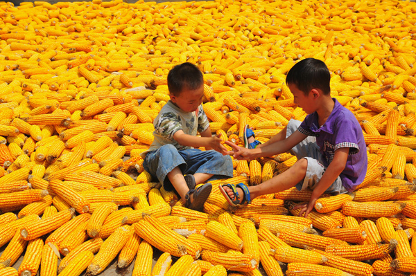 兄弟俩在丰收的玉米晒场上玩起了游戏,勾起了对儿时生活的无尽回忆。