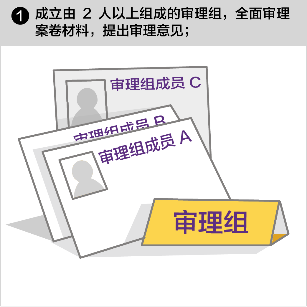 (一)案件审理部门收到审查报告后,应当成立由2人以上组成的审理组,全面审理案卷材料,提出审理意见。