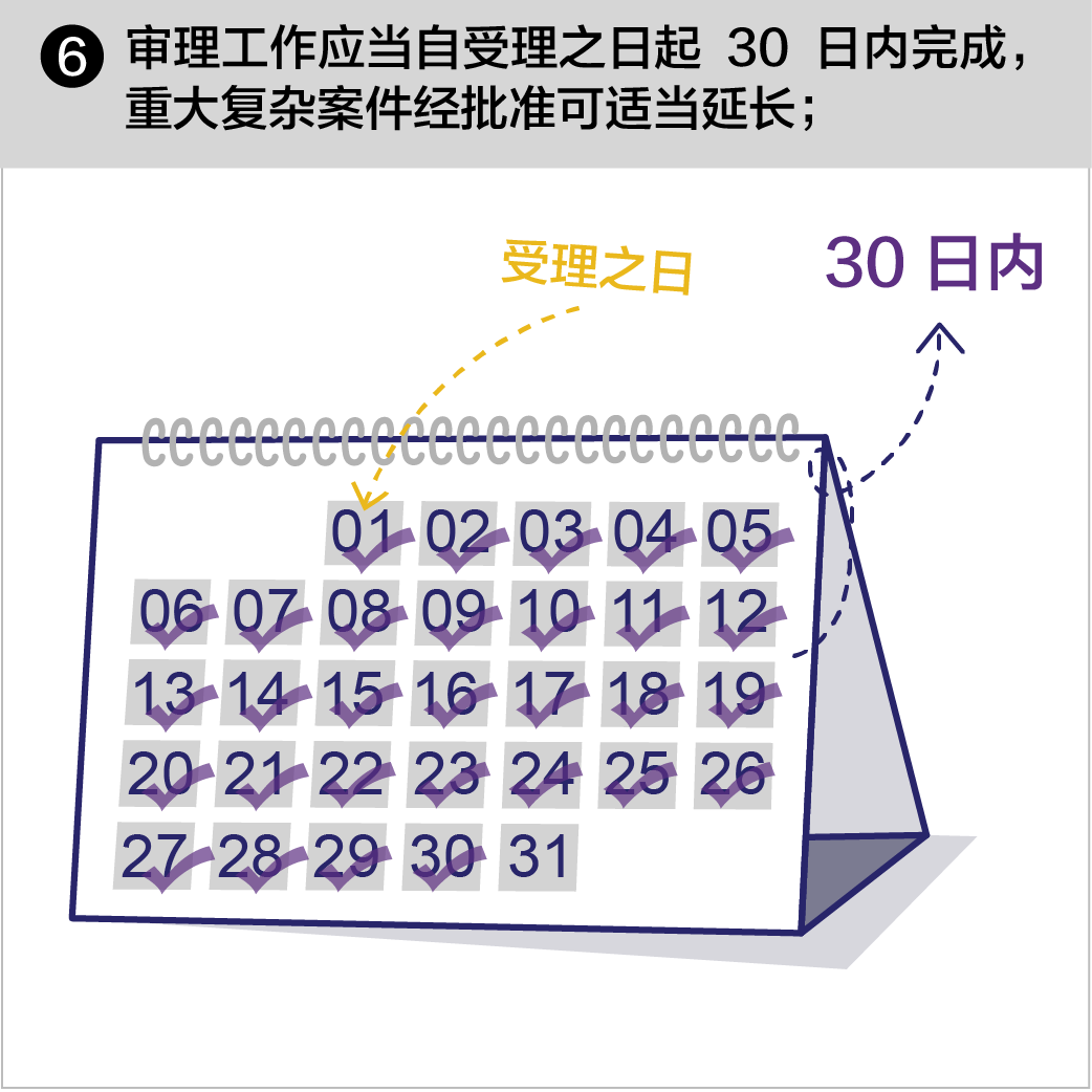 审理工作应当自受理之日起30日内完成,重大复杂案件经批准可适当延长。(摘自《中国共产党纪律检查机关监督执纪工作规则(试行)》)