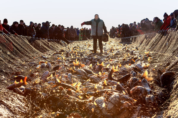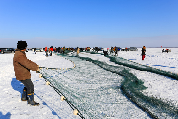 数九寒天,千里冰封,中国东北步入一年中最寒冷的“猫冬”季节。但在查干湖,随着渔民高亢的号子声,高头大马拉动绞盘牵引钢丝绳转动,渔网被缓缓拉起,冰面绘出一幅万鱼腾湖图。