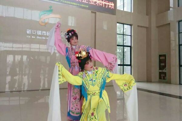 新安镇洪山戏表演者在作演出前准备(省级非物质文化遗产)
