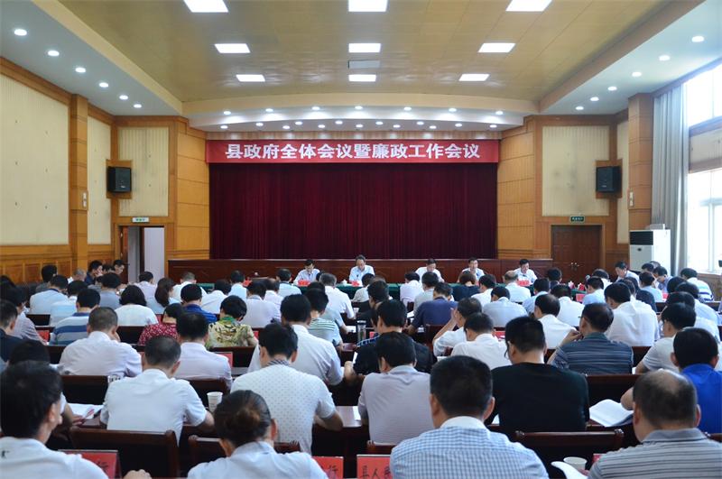 7月29日,县政府全体会议暨廉政工作会议召开,县长余学峰主持会议并讲话,县领导李木林、潘忠苗、马宜来、方茂盛、张幸福、程从春、龚爱平、张曾、胡海洋、胡勇、陈新及县经开区管委会副主任李志祥出席会议。