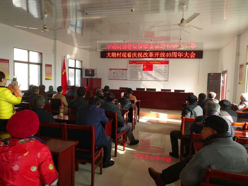 怀宁县平山镇纪委组织各村(社区)干部群众收听收看“庆祝改革开放40周年大会”直播。图为平山镇大塅村党员群众集中聆听习近平总书记重要讲话,感慨四十年改革开放以来国家取得的伟大成绩、人民生活发生的巨大变化。