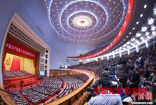 资料图:2017年10月18日上午,中国共产党第十九次全国代表大会在北京人民大会堂开幕。 中新社记者 刘震 摄
