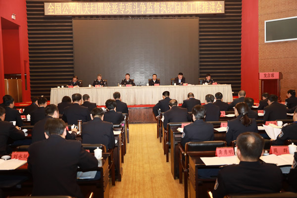 图为中央纪委国家监委驻公安部纪检监察组召开全国公安机关扫黑除恶专项斗争监督执纪问责工作推进会