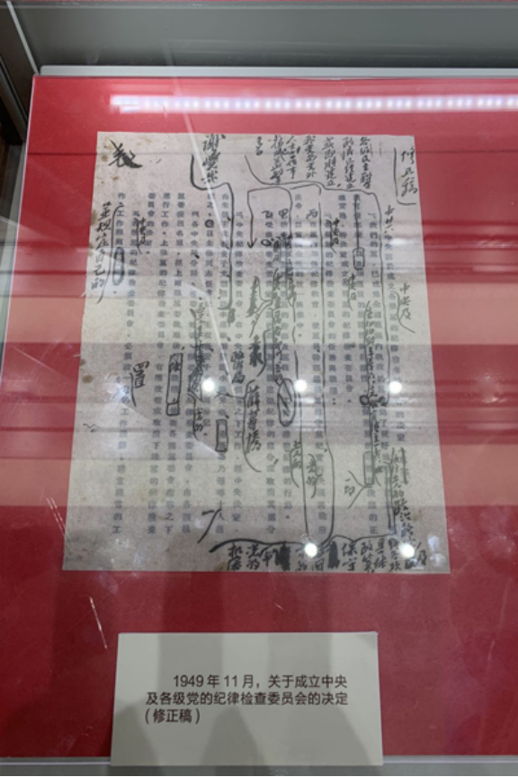图为1949年11月关于成立中央及各级党的纪律检查委员会的决定(修正稿)。中央纪委国家监委网站 李灵娜 摄