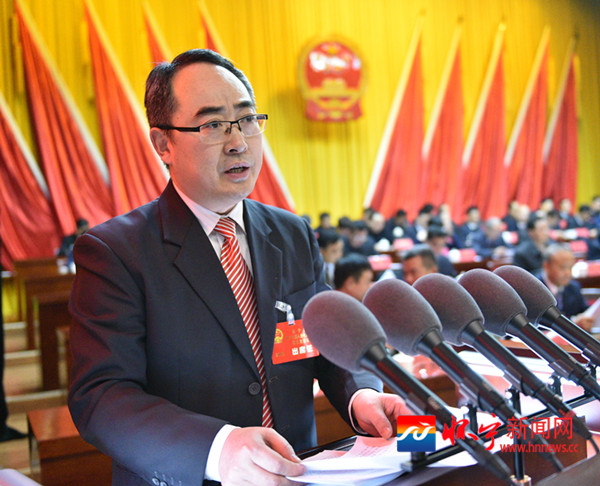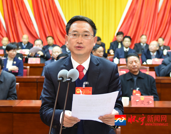 在热烈的掌声中,县长余学峰代表县政府向大会作《政府工作报告》。报告共分三个部分:一、2018年工作回顾;二、2019年重点工作;三、全面加强政府自身建设。
