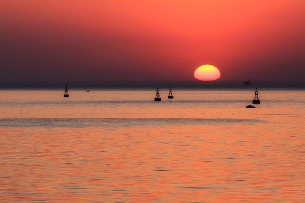 歌起处,斜日半江红。