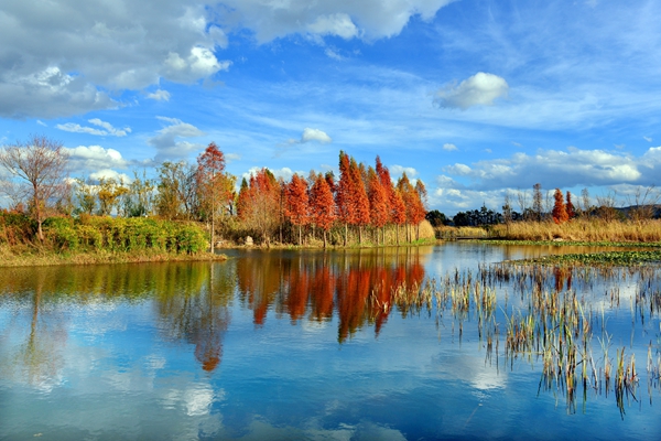 隔江亭子是何处,红叶白云秋满林。(云南省楚雄市纪委监委供 彭钰捷 摄)