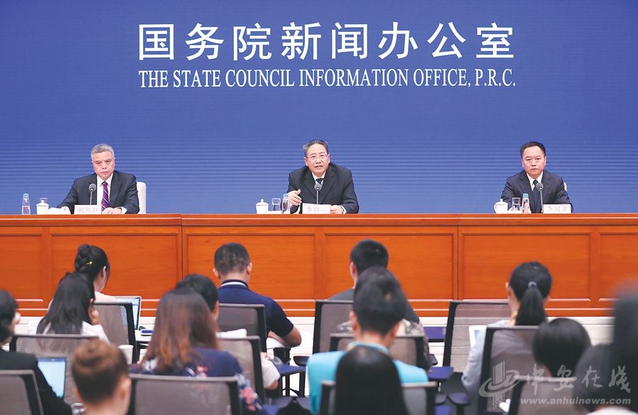 8月14日下午,国务院新闻办公室在北京举行以“坚持改革创新勇于闯出新路——全面建设现代化五大发展美好安徽”为主题的庆祝新中国成立70周年安徽专场新闻发布会。安徽日报记者 徐国康、吴文兵/摄