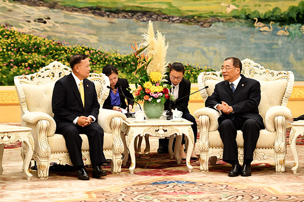 中共中央政治局委员、中央纪委副书记、国家监察委员会主任杨晓渡9月17日在京会见泰国监察专员署首席监察专员威塔瓦。(中央纪委国家监委网站 徐梦龙 摄)