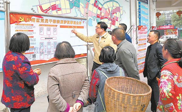 图为万州区纪委监委干部向群众讲解该区党员干部亲属涉权事项公开制度。李益东 摄