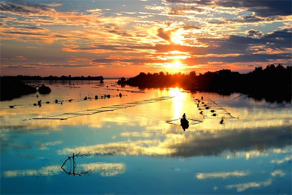 沅江南洞庭湖上,晚霞倒影绚丽。(湖南省益阳市纪委监委 江跃龙 摄)