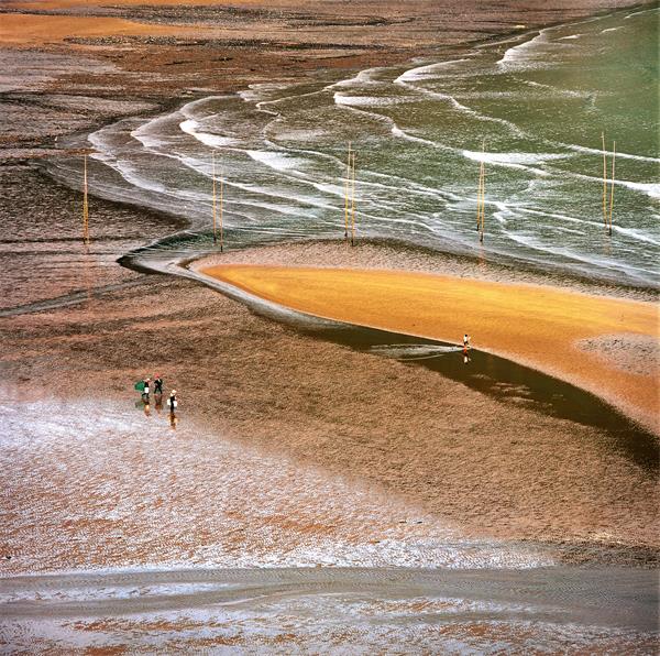 七月的滩涂上,辛勤的渔民正在“讨小海”,捞杂鱼。(福建省霞浦县纪委监委 翁志雄 摄)