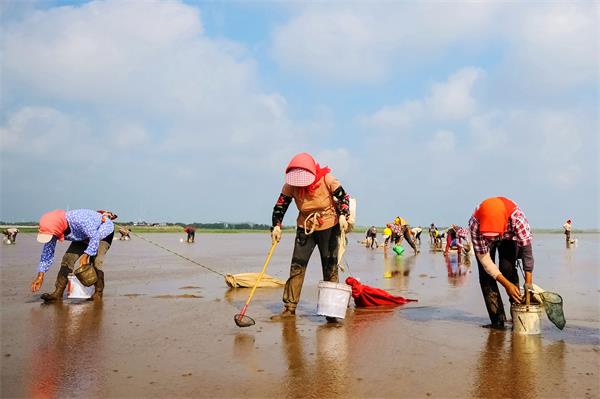 眼下正是泥螺收获的时节,拾螺人成群结队走上滩涂采拾泥螺。(江苏省射阳县纪委监委 吉东育 摄)