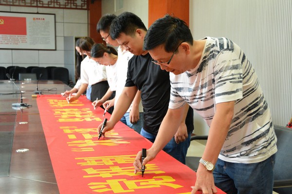 福建省莆田市秀屿区纪委监委驻区委宣传部纪检监察组联合教育局等单位开展“不摆违规升学宴”签名承诺活动。(福建省莆田市纪委监委 林书函 摄)
