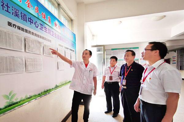 江西省赣州市上犹县纪委监委派驻县卫计系统纪检监察组对各乡镇卫生院落实健康扶贫政策情况开展监督检查。(江西省上犹县纪委监委 黄英彪 摄)