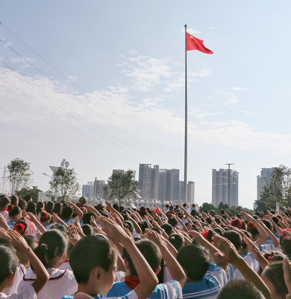 在云南省大理市少年艺术学校2019年秋季开学典礼上,五星红旗在嘹亮的国歌声中冉冉升起,少先队员们用庄严的队礼向国旗致敬。怀着对祖国的热爱,他们立志做小小“护旗手”。(云南省大理州纪委监委供 马晓玲 摄)