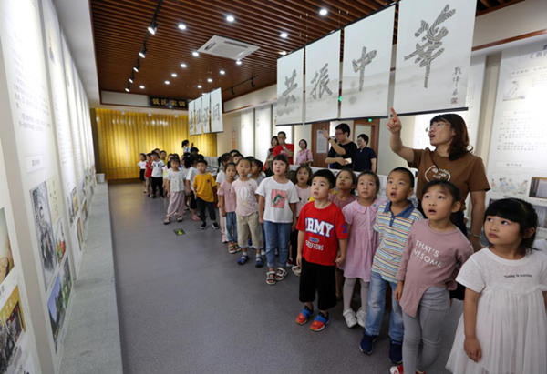 开学伊始,杭州市临安区衣锦小学组织一年级新生参观学校家风德育馆,学习“仁”“义”“礼”“智”“信”“忠”“孝”等中华传统美德,以特殊的形式给孩子们上开学第一课。(杭州市临安区纪委监委供 吕波 摄)