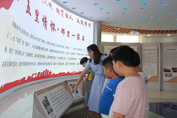 开学第一课,江苏省泰兴市济川小学的孩子们来到了五里墩社区组织生活馆,在老师们和讲解员的带领下,邻里一家亲、家和万事兴、尊师重道等思想的种子,在孩子的心中悄然发芽。(江苏省泰兴市纪委监委供 夏胤淼 摄)