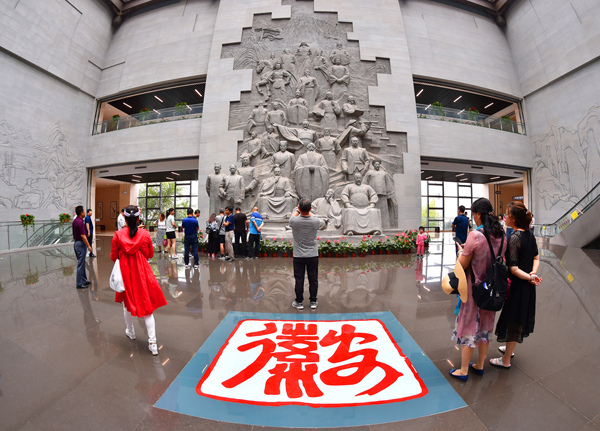 序厅高15米的巨型人物浮雕,以安徽省地图为背景,展现28位名人代表。