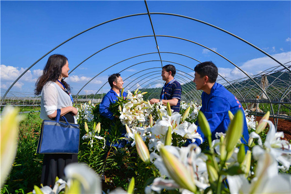 云南省师宗县纪委监委驻农业局纪检监察组对师宗县丹凤街道矣腊村花卉产业进行实地走访,摸排农业生产补贴申报、发放过程是否存在党员干部违规问题线索。(云南省师宗县纪委监委 陈海燕 摄)