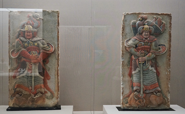 五代十国彩绘浮雕武士石刻