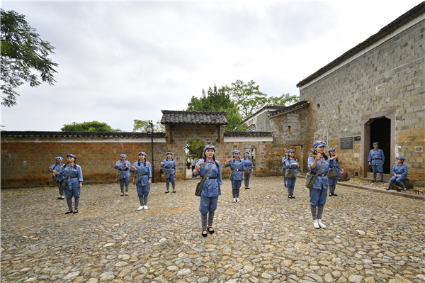 江西省金溪县组织党员干部来到该县红色教育基地——左坊镇后龚村红一方面军司令部旧址学唱战地快板书,开展国防宣传,传承红色基因。(江西省金溪县纪委监委供 邓兴东 摄)