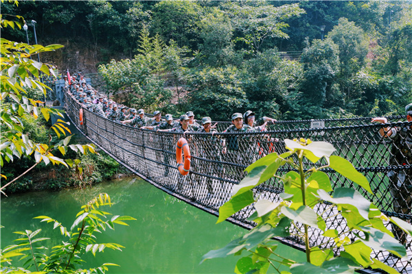 杭州市风帆中学开展国防教育营活动,组织学生进行军事拉练,培养学生铁的纪律、顽强的意志、过硬的作风等国防素养,强化国防观念,弘扬爱国主义精神。(杭州市下城区纪委监委供 倪婷 摄)