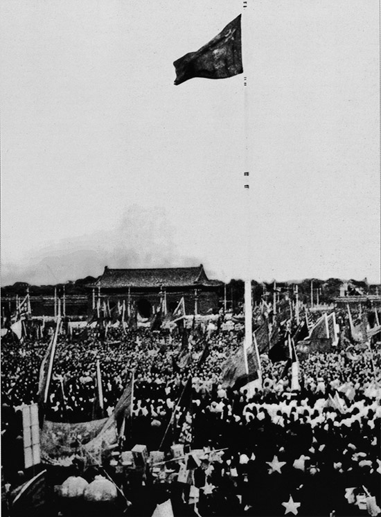 1949年10月1日,北京举行开国大典,天安门广场升起中华人民共和国国旗。