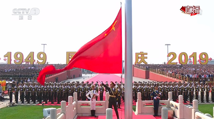 10月1日,庆祝中华人民共和国成立70周年大会举行升国旗仪式。
