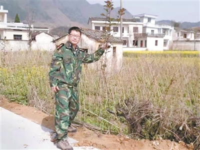 2012年,李夏在长安镇大谷村参加植树活动。刘潇丽 摄