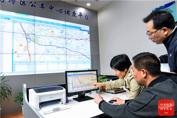 浙江省湖州市南浔区纪委监委开展节前“清风行动”,正风肃纪专项检查组在区公车中心调度平台,通过“定点轨迹查询+大数据比对”,查找公车私用问题线索。(浙江省湖州市南浔区纪委监委 姚陈芳 摄)