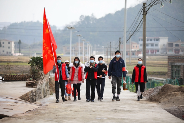 贵州省龙里县大学生志愿者把疫情防控知识翻译成苗族、布依族语言在少数民族村寨进行“双语”宣传,确保少数民族群众听得懂、记得住、会防控,并为隔离群众送去生活用品,让农村群众感受到贴心温暖。(贵州省龙里县纪委监委供 潘希来 摄)
