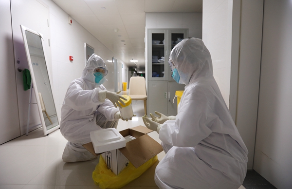 有生物安全上岗证和护理经验的崔俊霞,主动承担起为疑似病例、确诊病例及密切接触者进行采样送样的工作。从指导采样到将病毒样本送往河南省焦作市疾控中心进行核酸检测,期间流程繁琐复杂且风险极高,她却乐观地自称是“病毒样本携带者”。(河南省武陟县纪委监委供 冯小敏 摄)