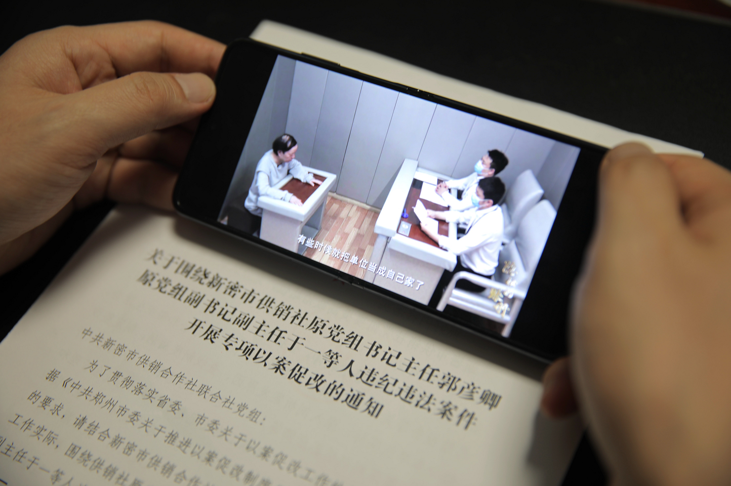 河南省新密市纪委监委通过警示教育片,向党员干部展示当事人“落马”经历及深刻忏悔,用身边事警醒身边人。图为该市党员干部观看供销领域违纪违法案件警示教育片《隐秘的账册》。(河南省新密市纪委监委 杨宗昊 摄)