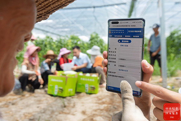 浙江省平湖市纪委监委紧盯群众身边腐败和不正之风,拓宽问题反映渠道,持续推动监督触角向基层延伸拓展。图为纪检监察干部在基层走访时向群众演示市纪委监委推出的一键举报平台。(浙江省平湖市纪委监委 吴祥 摄)