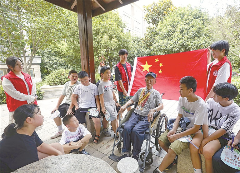 在这些纪念活动中,抗战老兵讲故事令人动容。老兵们历经炮火纷飞的战乱岁月,义无反顾投身救国救民的抗争中,立下汗马功劳,如今发挥余热讲述革命故事、宣讲英烈事迹。江苏省宿迁市泗洪县大楼街道96岁老兵张殿国34年来开展爱国主义教育近500场,接受革命传统教育的人数累计超两万人次。广西桂林97岁抗战老兵井茂荣退休后每年都为当地学校的青少年学生开展革命传统教育,教育孩子们努力学习、奋发图强。每一位老兵,都是一部活的抗战史。让我们向抗战老兵致敬,崇尚英雄、争做英雄,把红色基因传承下去。