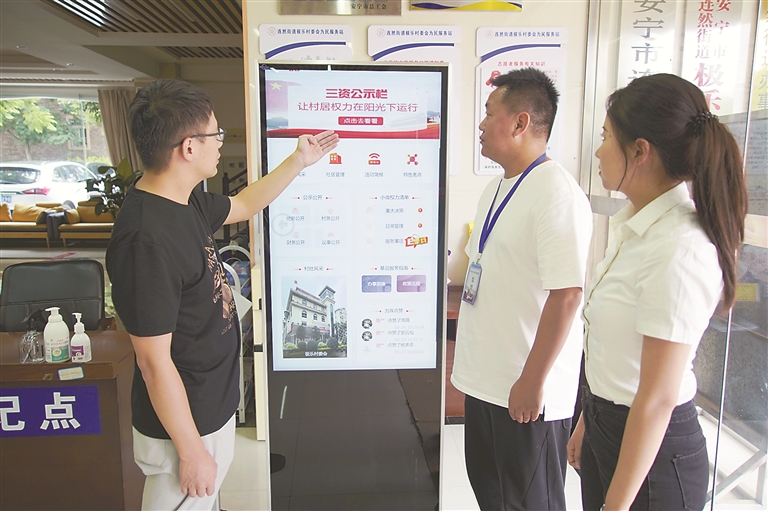 云南省安宁市纪委监委以大数据赋能监督管理,积极探索开发村(社区)“三资智慧监管平台”,推动惠民政策落细落实。图为日前,该市纪检监察干部在了解相关情况。 钱敏 摄