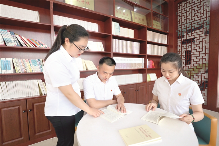 图为近日,江苏省连云港市海州区纪检监察干部在图书角学习《习近平新时代中国特色社会主义思想的世界观和方法论专题摘编》。茆廷成 摄