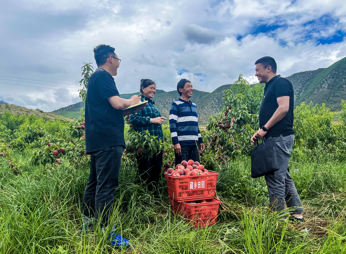 四川省乡城县纪委监委深入特色农产品基地、企业等一线了解情况,推动惠农助农、助企纾困等政策措施落地。图为该县纪检监察干部向种植户了解惠农政策及农业补贴落实情况。 李晓龙 摄